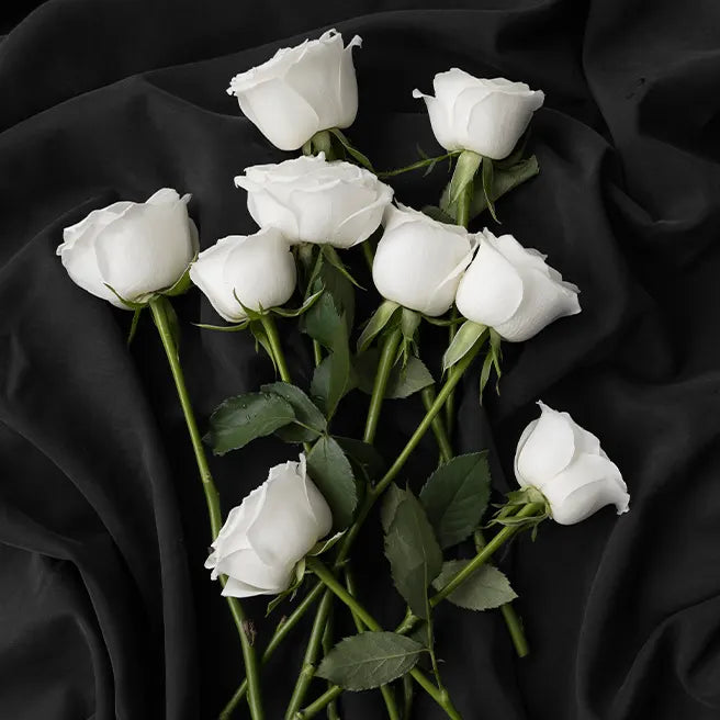During funeral processions and memorial services, the color scheme of the flower crown or floral arrangements often holds significance. While white is commonly used to express sympathy and respect, other colors can be chosen based on personal preferences and cultural traditions. White is a traditional and commonly used color for mourning flower arrangements. It symbolizes purity, innocence, and respect for the deceased. White flowers like lilies or white hyacinths can be chosen to convey a sense of calmness and condolence. Similar to white lilies, white roses also symbolize reverence, humility, innocence, and youth and are often used as sympathy flowers and funeral arrangements. Soft colors like pale pink, light yellow, or muted green can be combined with white to create a gentle and soothing effect in funeral flower arrangements. Pink roses symbolize love, kindness, and appreciation and are usually given to the bereaved, while dark red roses symbolize sorrow and grief. Yellow roses symbolize friendship and are given by friends to show loyalty. Yellow tulips represent joy and white tulips represent forgiveness.